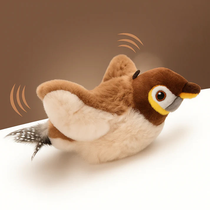 She drags this little bird everywhere. The flapping wings make my cat curious and play with it, the delivery time quicker than expected, recommend!
